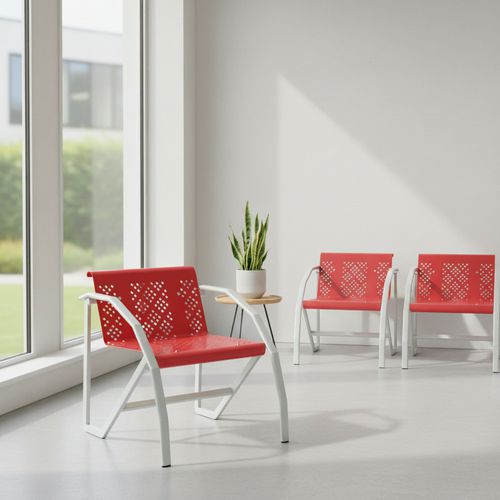 - Celokovová židle vhodná do čekáren.