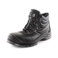 - Materiálové složení: Svršek z hovězí lícové úsně s reflexním PVC páskem, textilní prodyšná podšívka zateplená umělým kožíškem, PU-PU, olejivzdorná, antistatická, protiskluzová podešev.