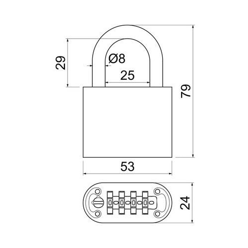| Název produktu | Zinkoslitinový kódový visací zámek, průměr třmene 8 mm, výška 29 mm, černá |
