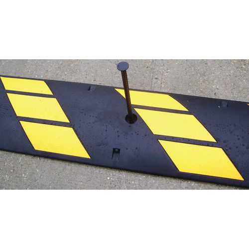 Poznámka: Pro lepší přilnavost doporučujeme použít konektory H link. V případě častého nebo silného provozu nákladních vozidel nás prosím kontaktujte. Upevňovací prvky do betonu nejsou součástí dodávky. Objednejte si 2 koncové díly na každý rychlostní práh (volitelné).