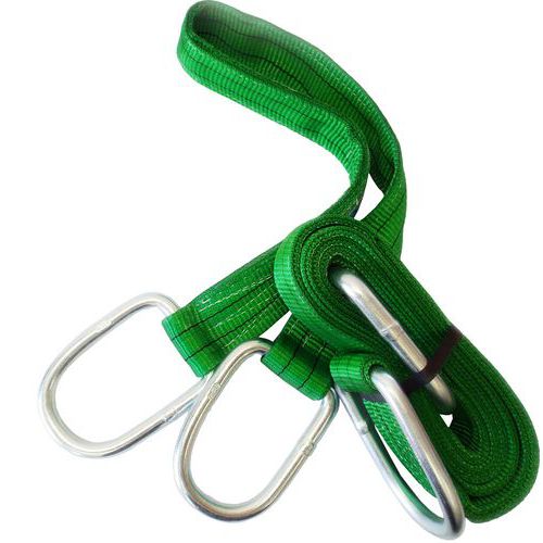 Manipulační pásy pro vázání, zavěšení a uchopení břemen. Opatřené dvěma kovovými oky DH 100 na koncích pásů. Koeficient bezpečnosti 7:1, šířka pásu je 6 cm. K dodání v různých délkách. EN 1492: Definuje metody pro ověření požadavků na bezpečnost vázacích popruhů ze syntetických vláken určených pro všeobecné použití. DIN 61360: Norma definuje vlastnosti technických produktů.